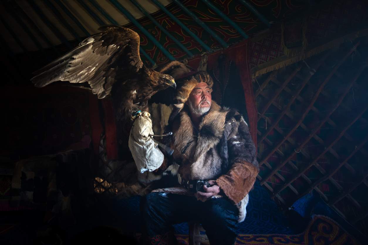 Al caer la tarde, el fuego ilumina los gers —tiendas circulares que han cobijado a los nómadas durante siglos— y las sombras del grupo se alargan sobre la llanura.